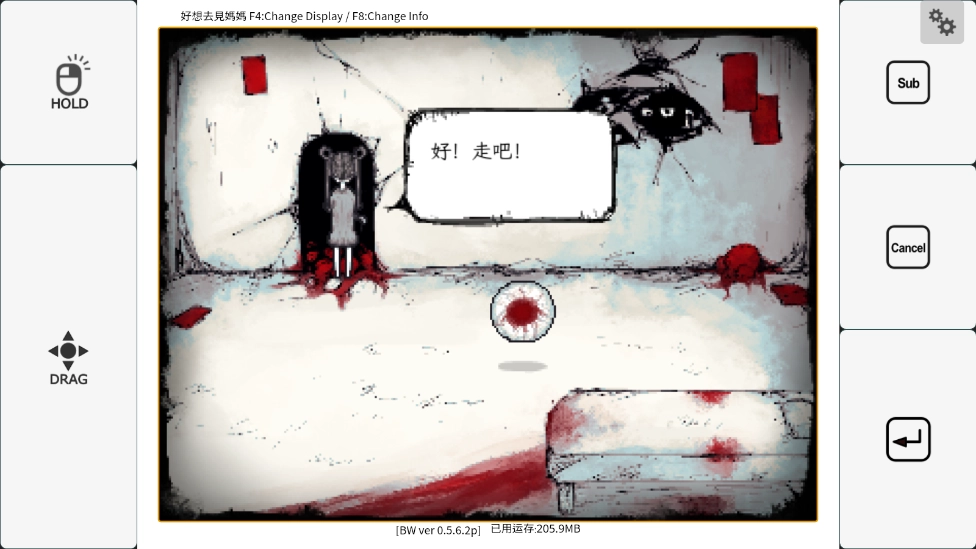《好想去见妈妈》是一款暗黑风格的剧情向冒险解谜游戏。在这款游戏的汉化版本中,玩家将化身为离家的孩子,开启一段寻找妈妈的冒险之旅。旅途中,你会遇到形形色色的谜题以及充满温暖的NPC。你需要通过与NPC交流、搜集线索来谜题,推动剧情发展。需要注意的是,你做出的每一个选择都将对后续的剧情走向产生影响。
