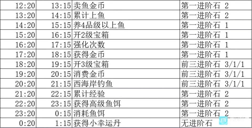 每小时一个阶段任务,奖励:进阶石,强化石,金币。