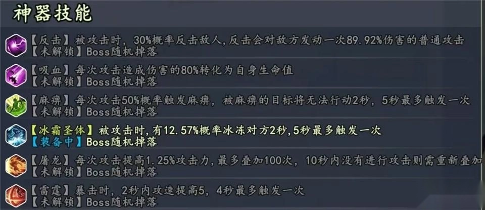 屠龙:理论上打boss用的,pvp效果感觉一般,基础数值过低;