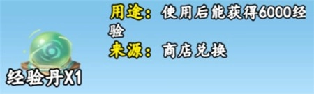 经验丹:30经验水晶,和经验书同比例,可以拿来做每日任务,6000经验;