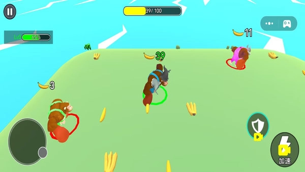 《巨猿乱斗冒险》是一款趣味十足的冒险游戏。在游戏中,你的巨猿通过持续学习与成长,能解锁新的能力和技能,从而提升战斗效率。当游戏屏幕上的香蕉被抢夺一空时,混乱便会拉开序幕。体型较大的猴子可以吸收小型猴子的能量,而最终存活下来的猴子会进化为美猴王。