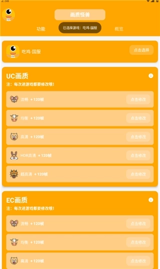 1、热门射击类手游:支持多款热门射击类手游的画质调整,包括目前主流的战术竞技类、射击闯关类手游都可以适配。