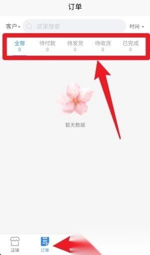 进入“订单”页面后,能按照全部、待付款、待发货、待收货、已完成等不同状态对订单进行筛选和管理。