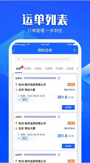 货源更新快,实时更新各地新的运货订单;