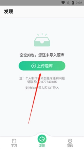 进入上传页面,点击上传题库按钮;