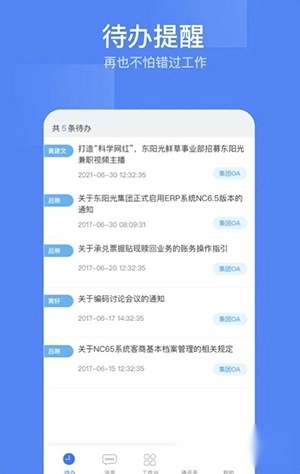 东阳光门户推送的待办任务更清晰明确,能有效防止用户遗漏重要事项的处理。