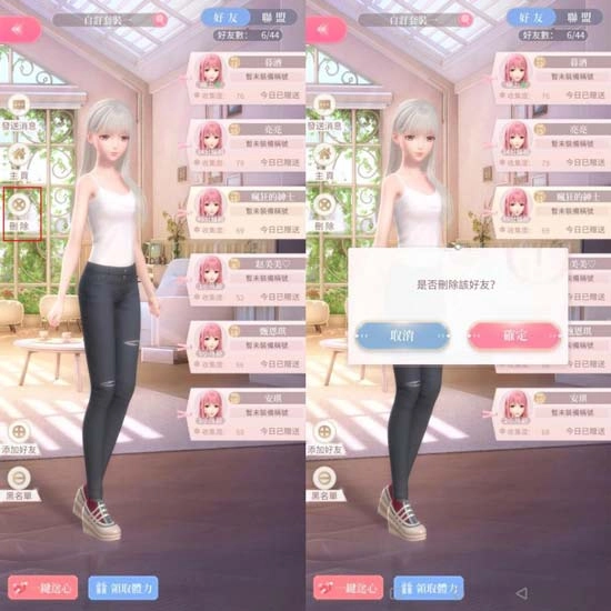 在闪耀暖暖里,好友位是有数量限制的。要是玩家想添加新好友却没有空位,就可以把那些长时间没登录游戏的好友删掉。操作方法很简单,点击对应好友的头像,再点左边的删除按钮就能完成删除,是不是特别方便呀?