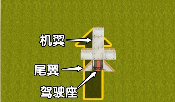 然后我们取出机翼,制作飞机的头部,冒险家们可以参照截图来制作。
