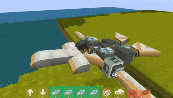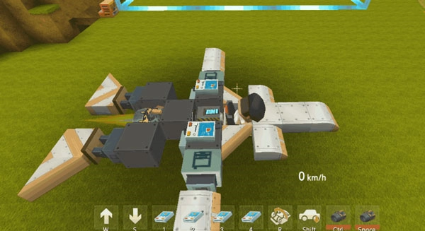 这样一个简易的飞机就制作完成啦!造好载具后试试看,先坐上飞机,按下推进键: