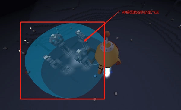 我们乘坐火箭降落时,能看到图中的蓝色屏障,这是首次抵达萌眼星时神秘图腾提供的氧气,要注意它的持续时间只有5分钟哦~