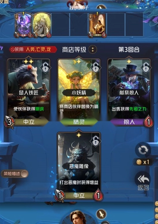 王子前期的策略是能合成二星就上,毕竟前期能留到后期的牌没几个,除了恶魔雕像,其他几乎都得卖掉。