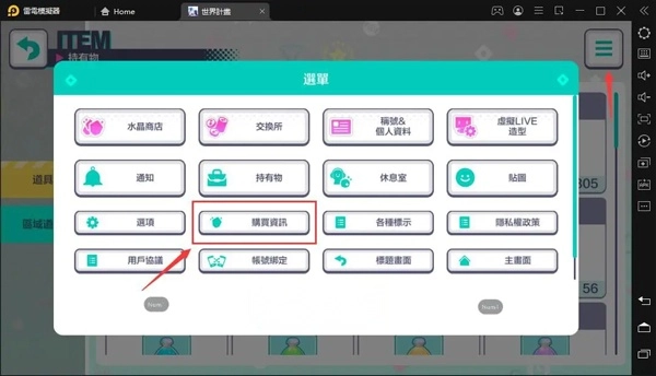 ※水晶的持有情况可通过「选单」→「购买资讯」进行查询。