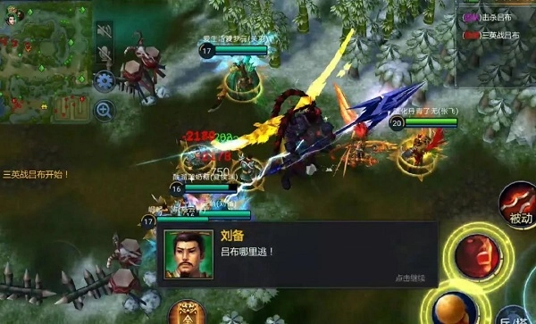 (隐藏)三英战吕布:当吕布的血量被削减到40%,且刘备、关羽、张飞三人都处于靠近他的状态时,该事件将被触发;事件结束后,三英会获得全属性加成。