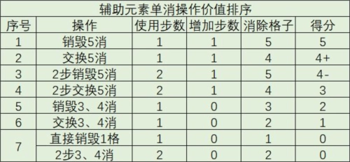 在拾取5消中间提升1级技能后,辅助元素无需额外耗费步数来凑出5消。