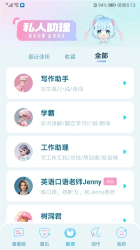 在【助理】频道里,有写作助手、学霸、工作助理、英语口语、树洞君等多种实用小工具,大家能够依据自身需求挑选使用。
