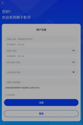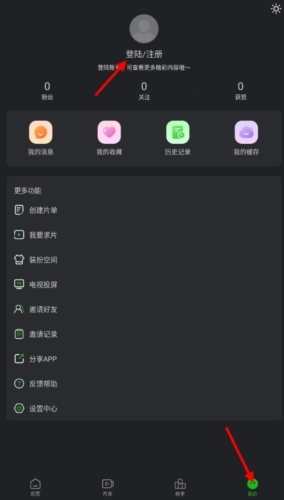 在狮子影评我的页面中点击登录/注册按钮;