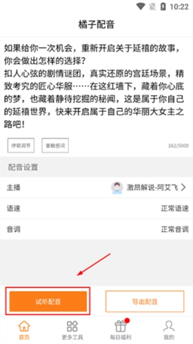 选择声音,然后点击试听配音。