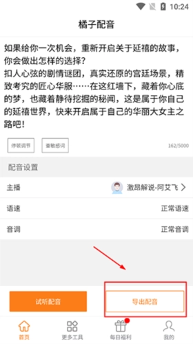 试听合适无问题后,导出配音,保存音频至手机。
