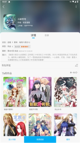 找到想看的漫画和小说后,一键添加到书架就行,还能在线免费阅读,或者先缓存下来之后再离线阅读。