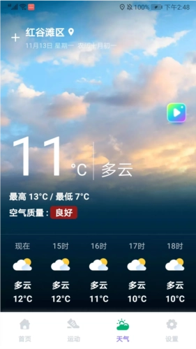 打开天气界面,就能看到当前位置的最低温、最高温和空气质量情况,这些信息可以为我们制定运动计划提供参考。
