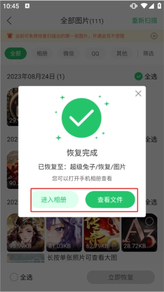恢复完成后,你可以点击【查看文件】按钮来找到那些已经成功恢复的照片。