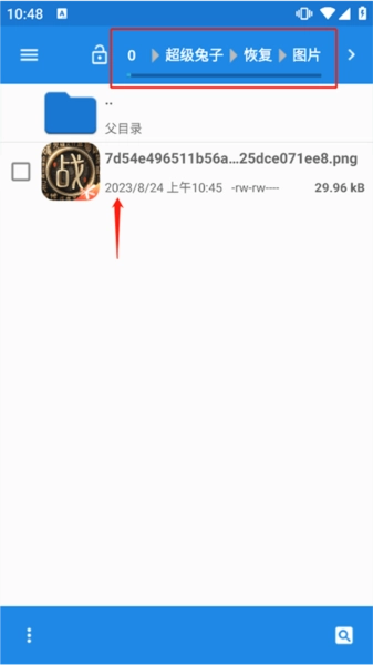 最后按照超级兔子的提示,依次点击打开文件管理器,进入内部储存设备,找到超级兔子文件夹,再打开其中的图片子文件夹。