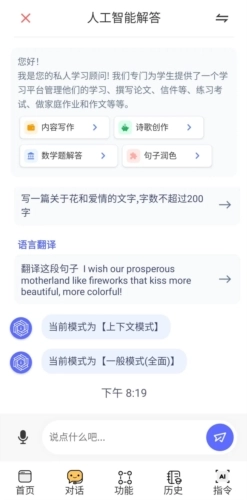 可以点击功能按钮,输入问题后获取解答;也能直接在对话页面发送内容,若在外部复制文本,打开软件时会自动检测到;当然,语音输入也是支持的方式。