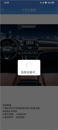 与行车记录仪通过WLAN方式连接,记录仪的热点名称以HONDA开头,默认密码是12345678,为确保连接稳定,建议关闭蓝牙。