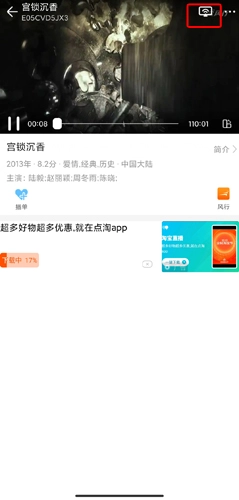 在视频播放页面,点击右上角的投屏按钮;
