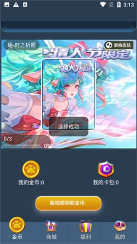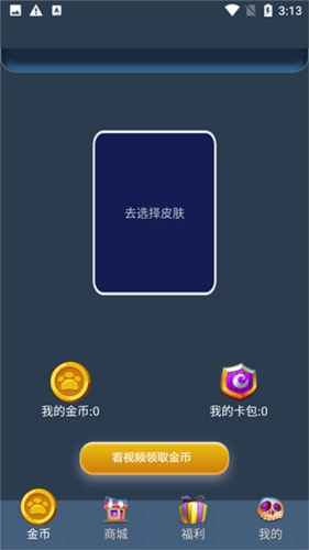 选好成功目标后,接下来我们需要做的是通过观看视频广告获取金币,再用金币抽取皮肤卡碎片。
