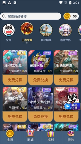 可以看到大部分热门游戏的皮肤都有,每种皮肤都需要三块对应的碎片才能兑换。