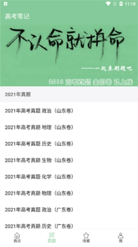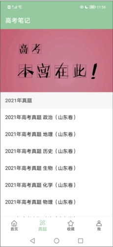 真题页面收录了历年高考各科的真题,不仅包含全国卷,还涵盖北京、山东等多个地区的真题卷。