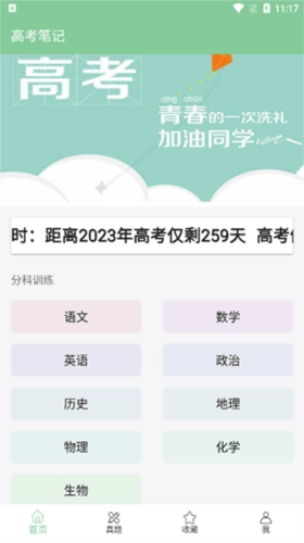 首页会展示高考倒计时,并且将高考的所有科目进行分类排列,方便用户更快速地找到所需科目。