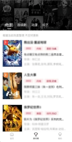 还可以点击屏幕下方的排行,查看每日最新、热播的各类榜单。